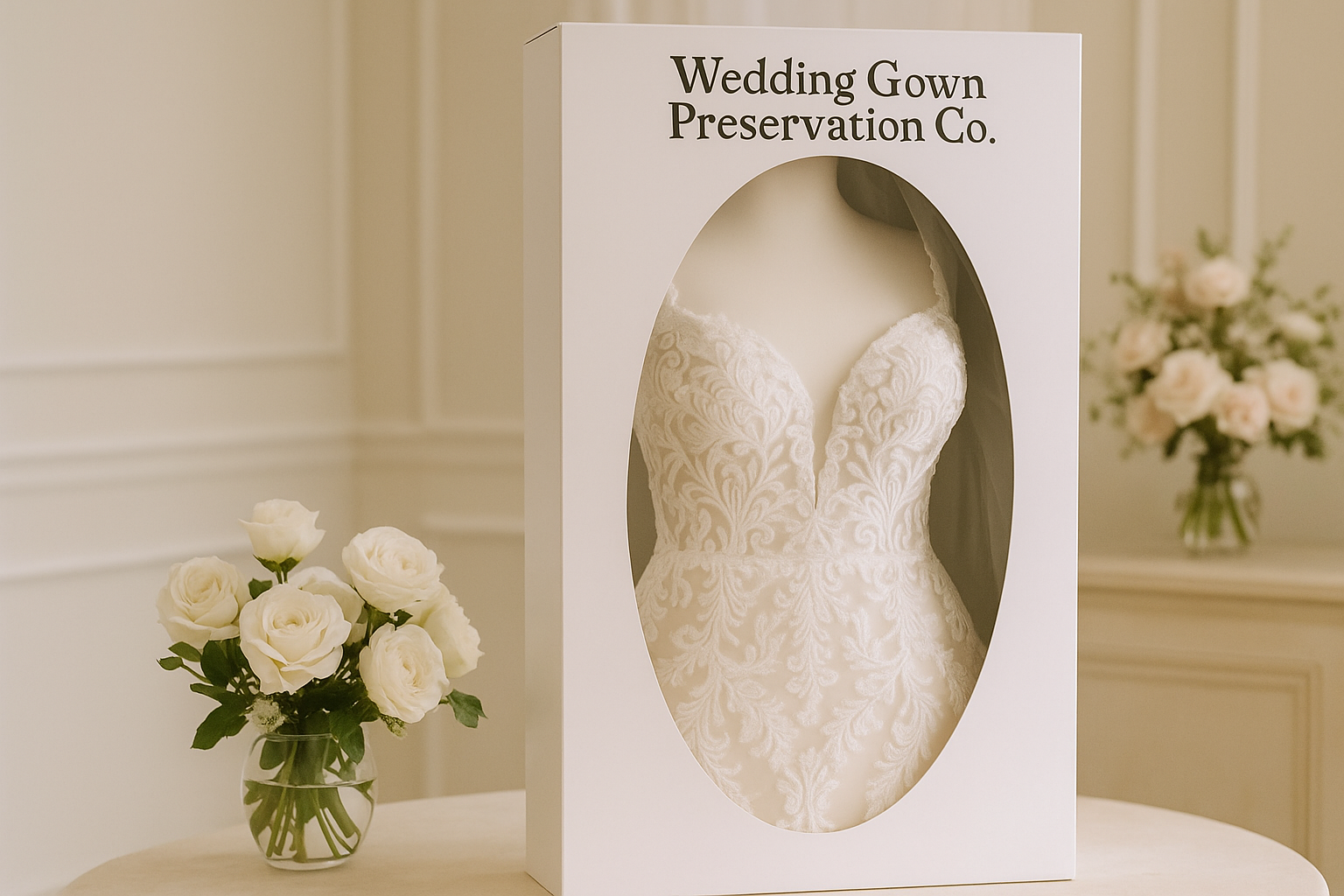 Along with your wedding dress, up to five accessories sent by you, like veils, gloves, bouquets, or shoes, are also carefully packed inside the preservation chest.