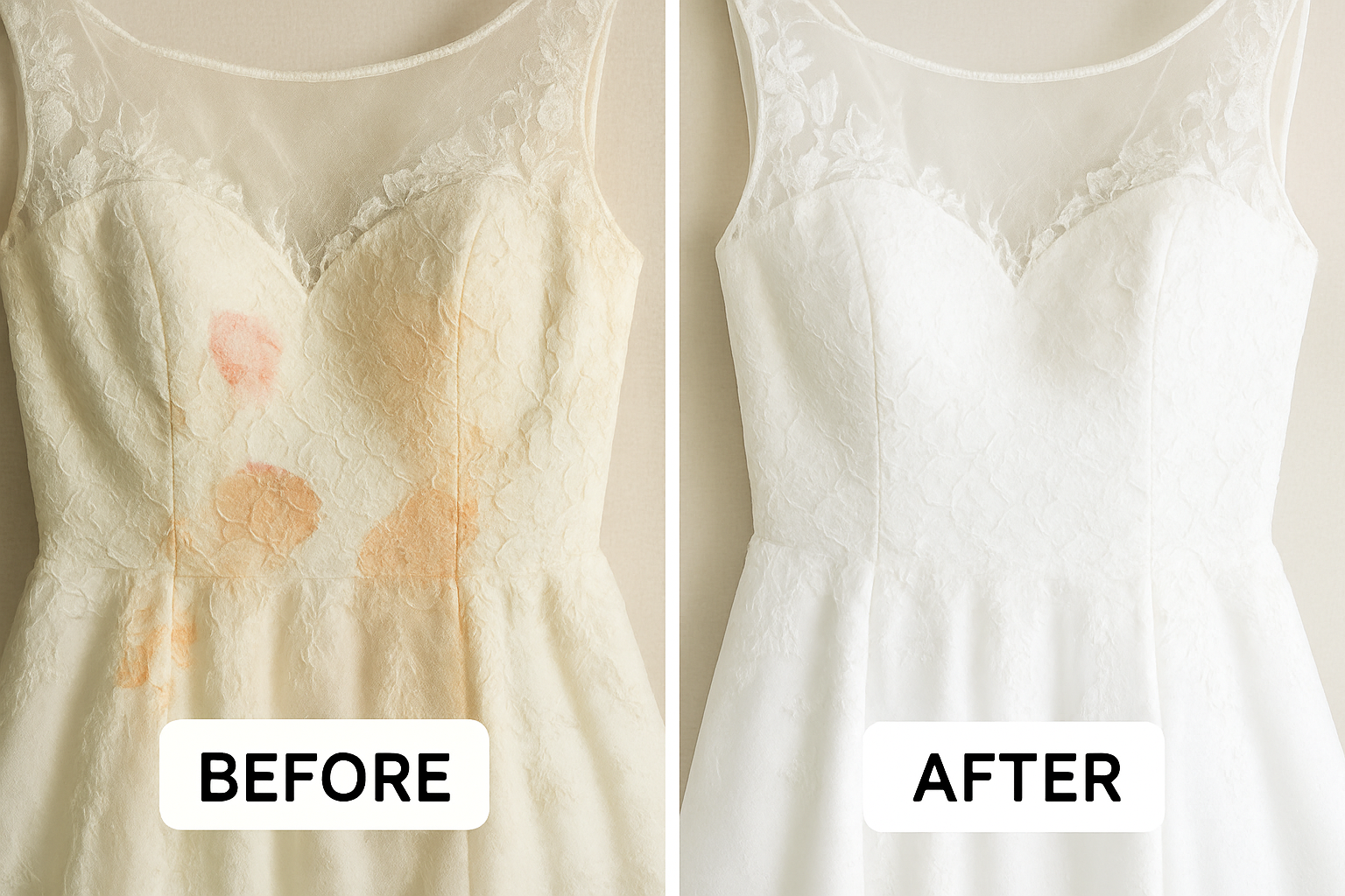 We use advanced cleaning methods and museum-trusted technology to protect your dress. Our acid-free materials prevent yellowing and discoloration, keeping your gown as stunning as the day you wore it.