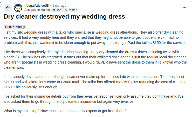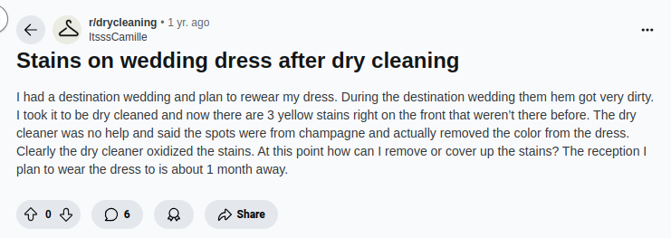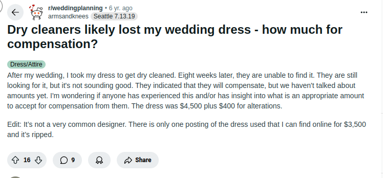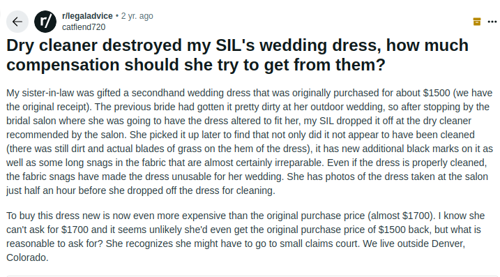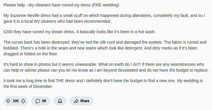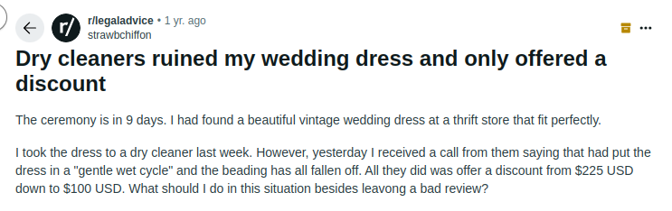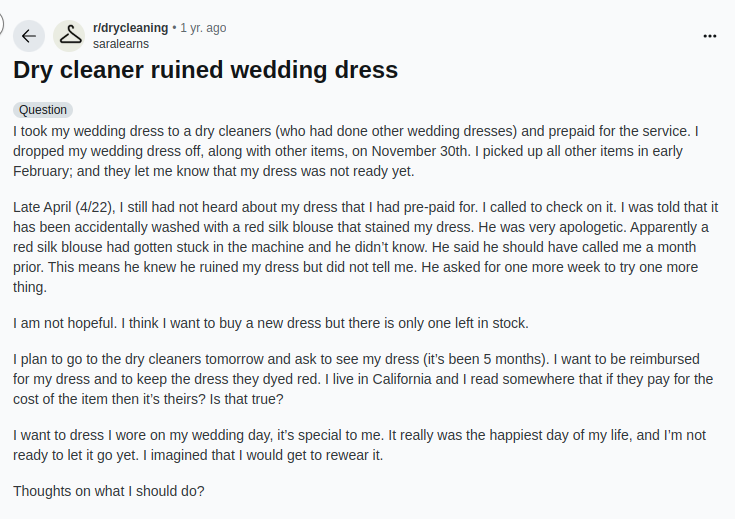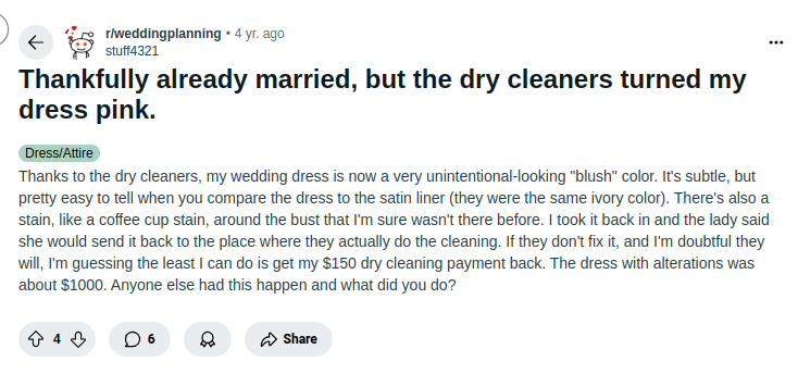 Shocking Stories from Reddit Brides (Unprofessional Dry Cleaning Service Disasters)