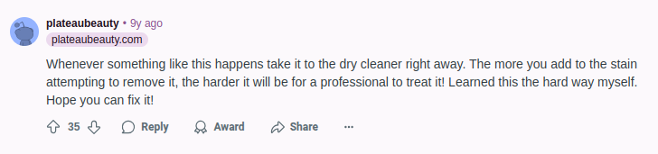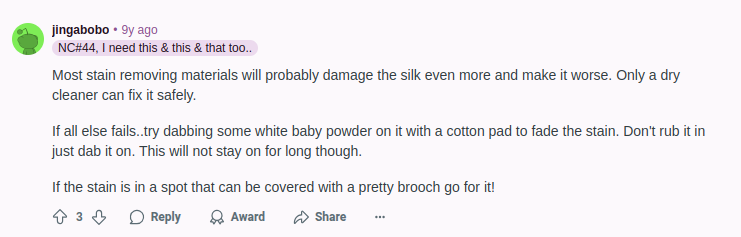 Brooches aren’t just for style; they can hide little stains, too. Check out this Reddit comment!