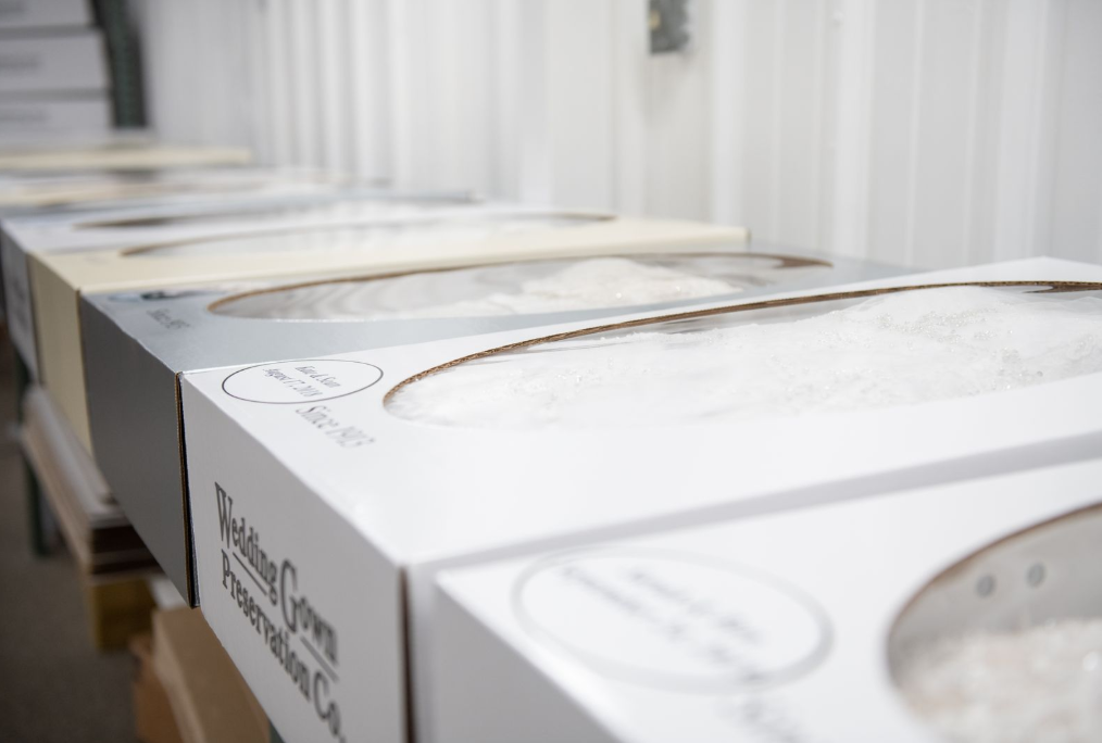 Once your gown has been cleaned and preserved, it is carefully stored in the preservation chest and then packed into a durable, dual-layered, waterproof shipping container to ensure a safe journey back to your home.