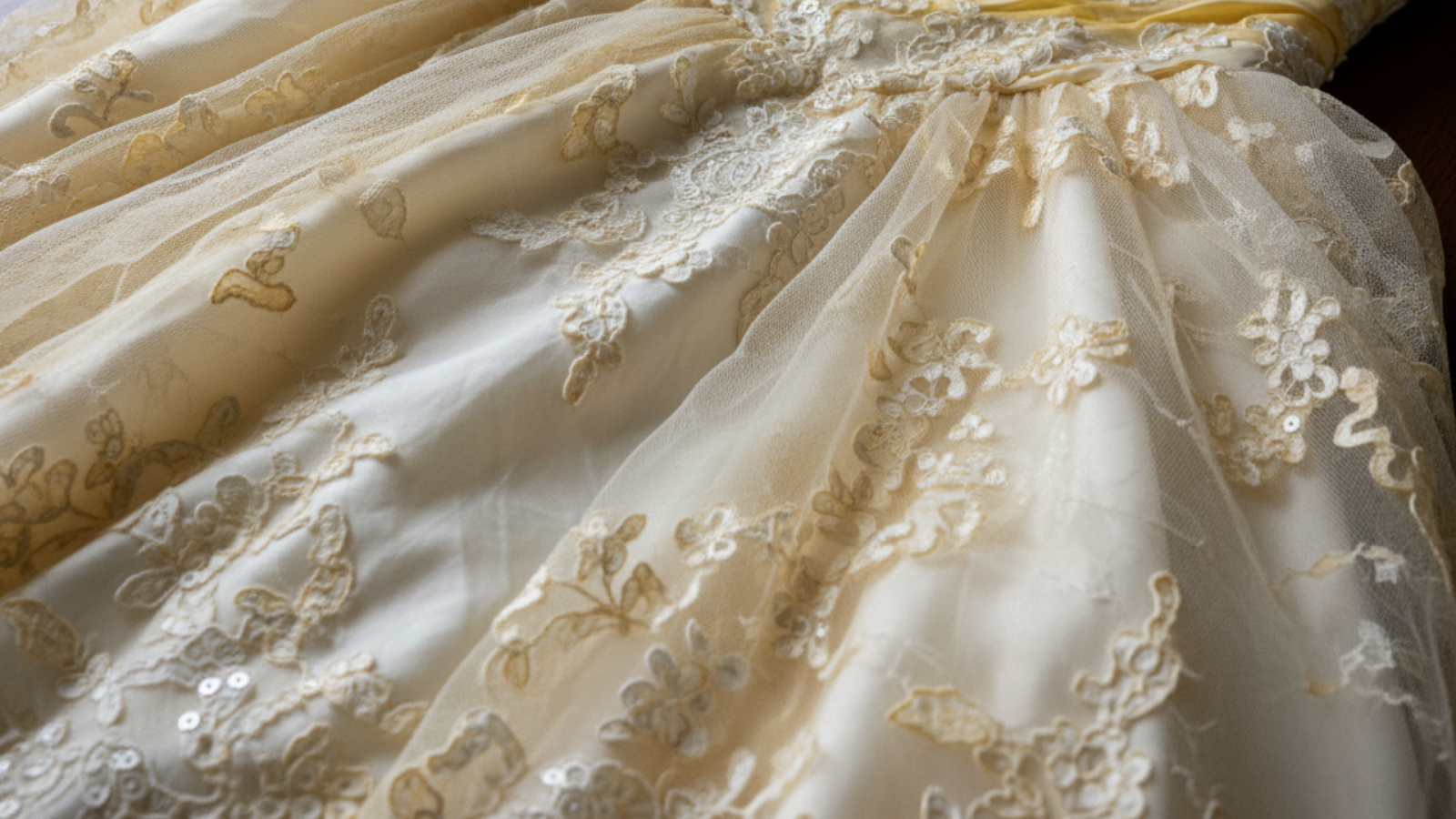 Hidden marks from sweat, makeup, or wine can sink deep into the fabric and show up months later as yellow patches if they are left untreated. Professional cleaners carefully inspect every inch of your gown for these stains that you might not even notice.