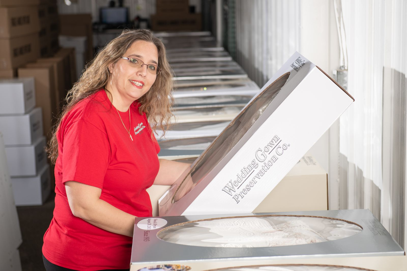 Once the gown is repaired and steamed, it is placed into a preservation chest made of acid-neutral materials. This chest meets all the delicate fabric care standards recommended by the International Fabricare Institute.